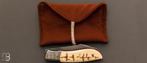 Couteau " Wharncliffe " custom pliant par Milan Mozolic - Ivoire de mammouth et damas