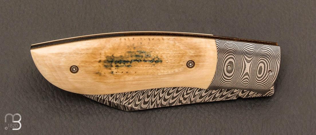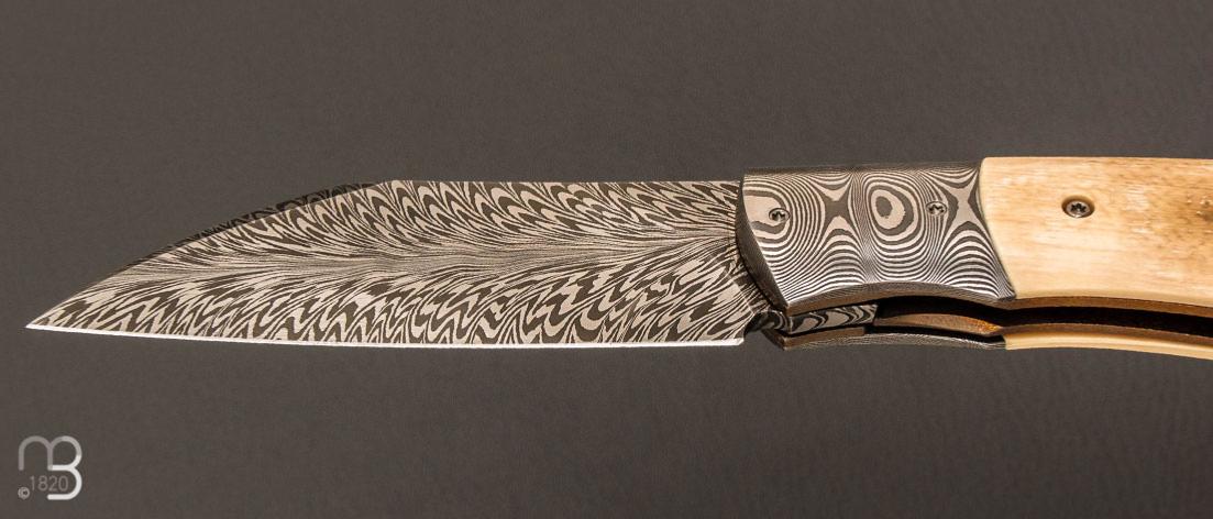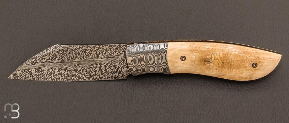 Couteau " Wharncliffe " custom pliant par Milan Mozolic - Ivoire de mammouth et damas