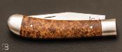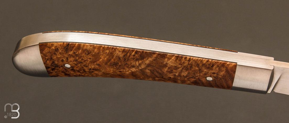 Un couteau de poche type Yatagan avec des plaquettes en loupe de frêne