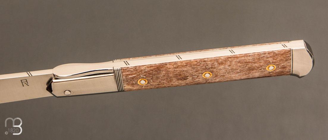Romain Alvarez nous propose une version de luxe du célèbre couteau "Yssingeaux" avec des finitions soignées et une lame en RWL-34