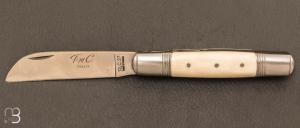 Couteau  "  tonneau " scrimshaw damas de Jean-Michel Remaud