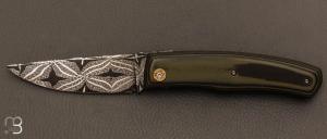 Il fabrique des couteaux fermants à liner-lock ainsi que des couteaux droits.