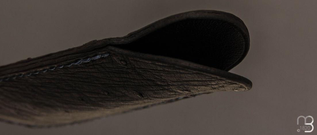 •  Etui cuir d'autruche / veau pour couteau pliant fait main par Chantal Trocmé - Noir