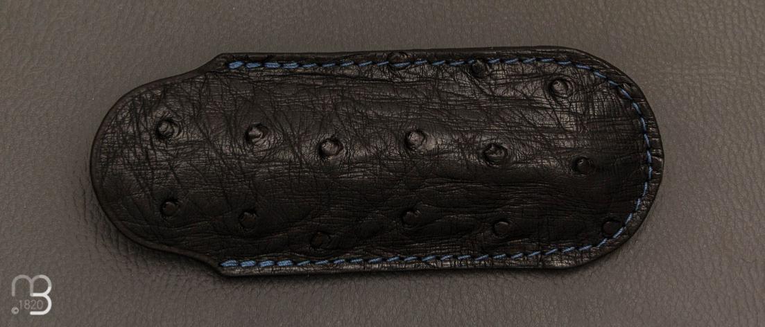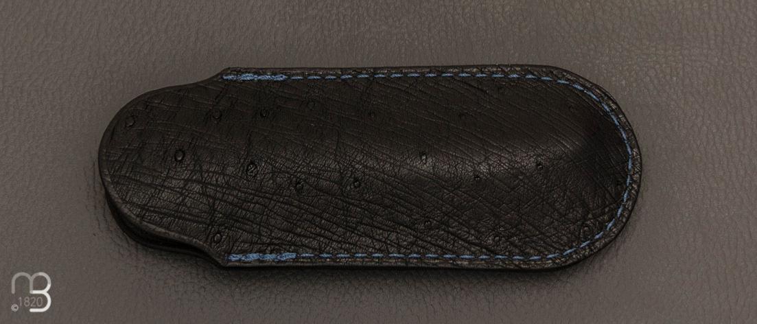 Etui cuir d'autruche / veau pour couteau pliant fait main par Chantal Trocmé - Noir