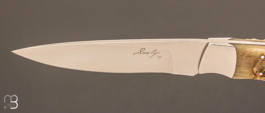 •  Couteau droit custom de Sam Cox - ATS-34 et Corne de bélier