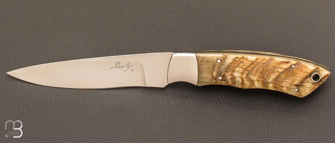 Couteau droit custom de Sam Cox - ATS-34 et Corne de bélier