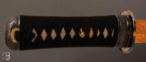 Tsuka plaquettes bois de jacquier recouvertes de Same blanc, tressage Ineri maki en soie Japonaise noir. Mekugi en bamboo,